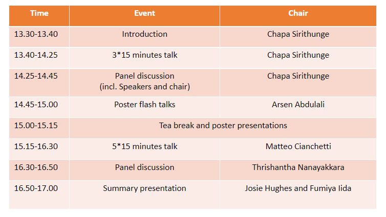 The posters of the afternoon session should be attached to the designated stands during the lunch break. We recommend bringing and mounting your poster before 13:30 BST. The posters should be removed from the stands after the workshop at 17.15 BST. Confirmed poster presenters are